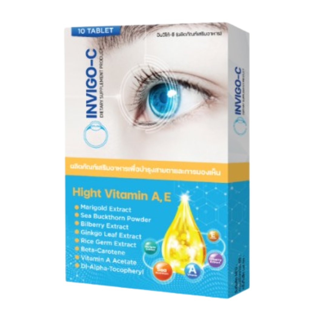 Invigo C อินวิโก้ ซี วิตามินบํารุงสายตา อาหารเสริมบํารุงสายตา เม็ดเดียว จบทุกปัญหา ปัญหาตาแห้ง ต้อลม ต้อกระจก ปวดแสบจากมลพิษ ตาพร่า ขาดวิตามิน